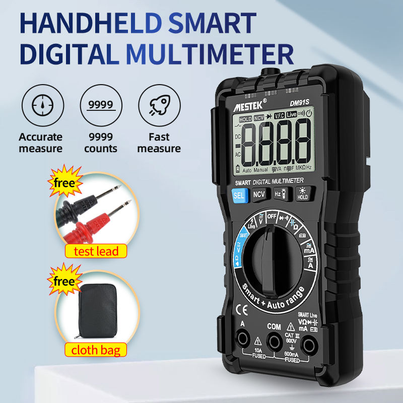 Multimètre numérique professionnel DM91S 10000 points Testeur NCV HFE True RMS Capacité 100mF Tension courant AC/DC Multimètre