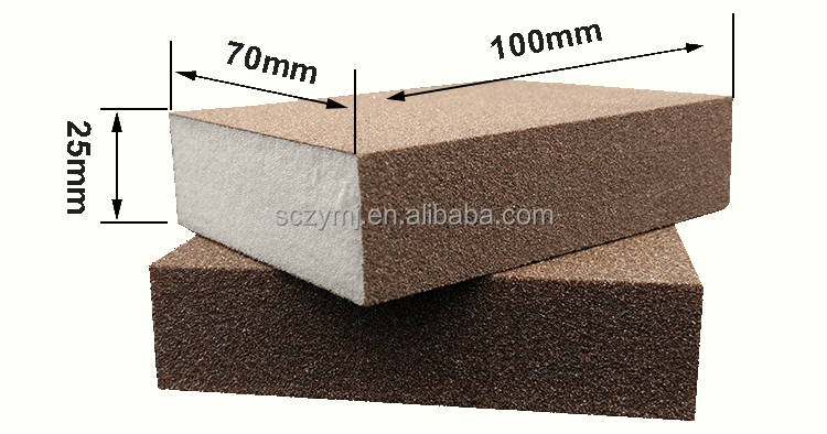 Bloc de ponçage broyé au sable éponge DMS papier de verre 25*70*100mm bloc d'éponge de ponçage abrasif d'oxyde d'aluminium avec main pour le meulage