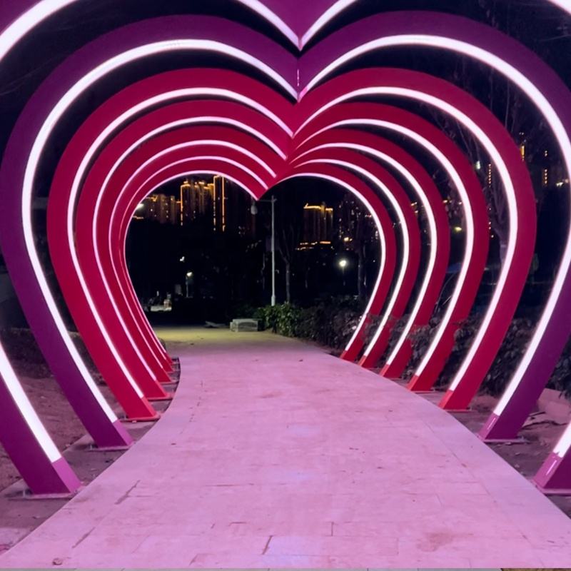 Lumière de tunnel LED RGB en acier inoxydable en forme de cœur contrôlée par DMX512, IP65, DC24V/12V, garantie de 3 ans, éclairage décoratif coloré