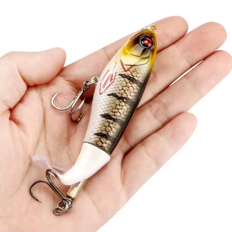 Leurre de pêche whopper popper topwater avec queue tournante douce