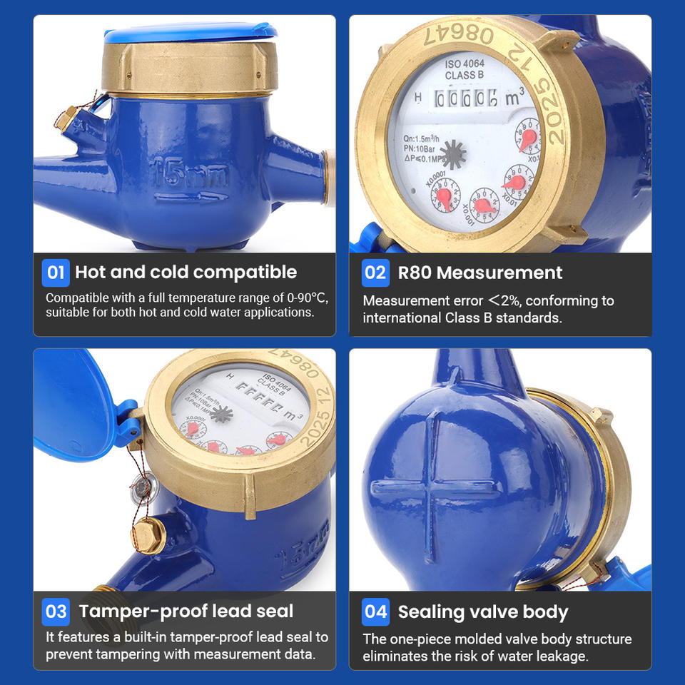 Compteur d'eau froide et chaude en fonte à connexion filetée à aile rotative DN15 R80