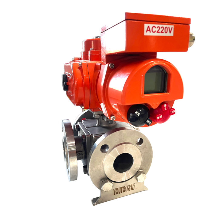 Actionneur électrique à 3 voies DN25-DN200 24V CC à bride en acier inoxydable, vanne à bille motorisée pour le contrôle du débit d'eau, OEM YOUTO YT