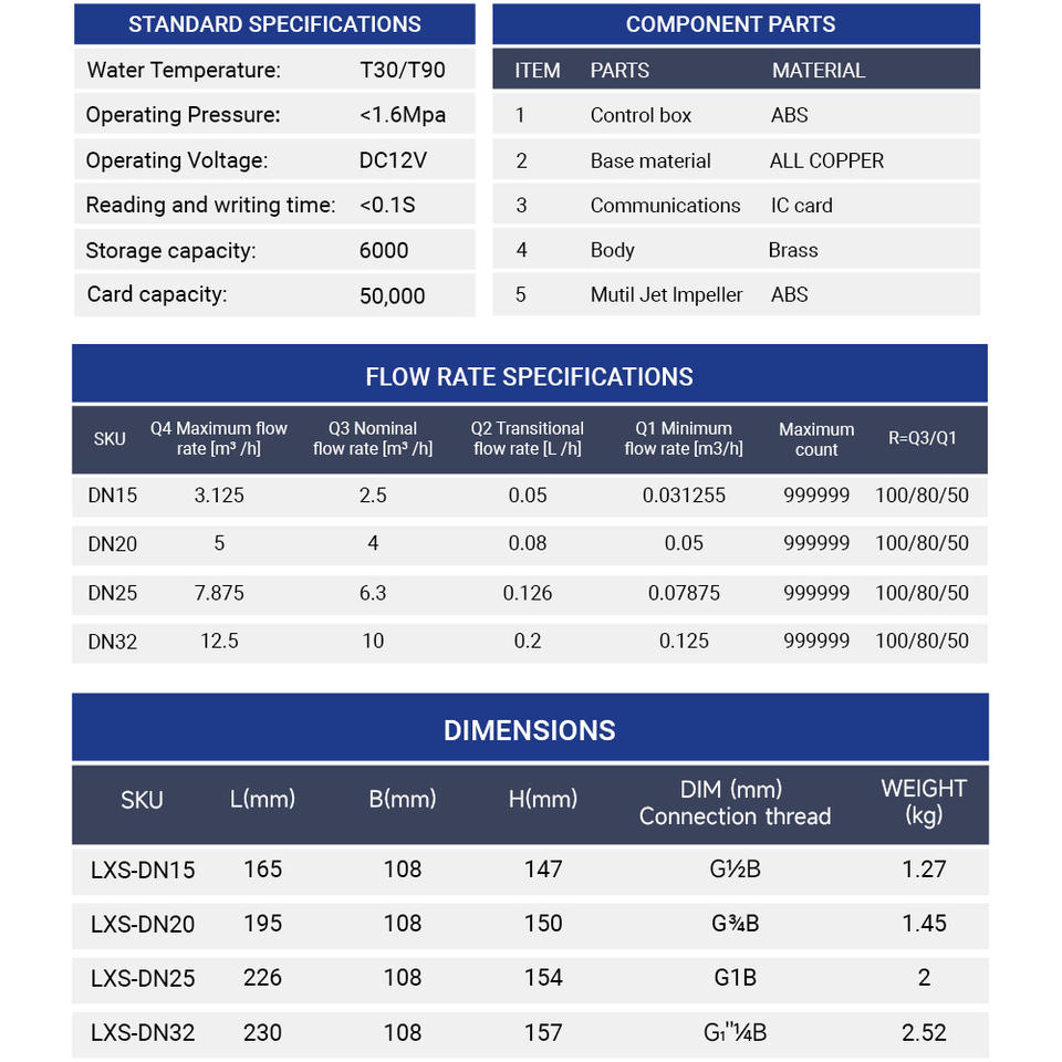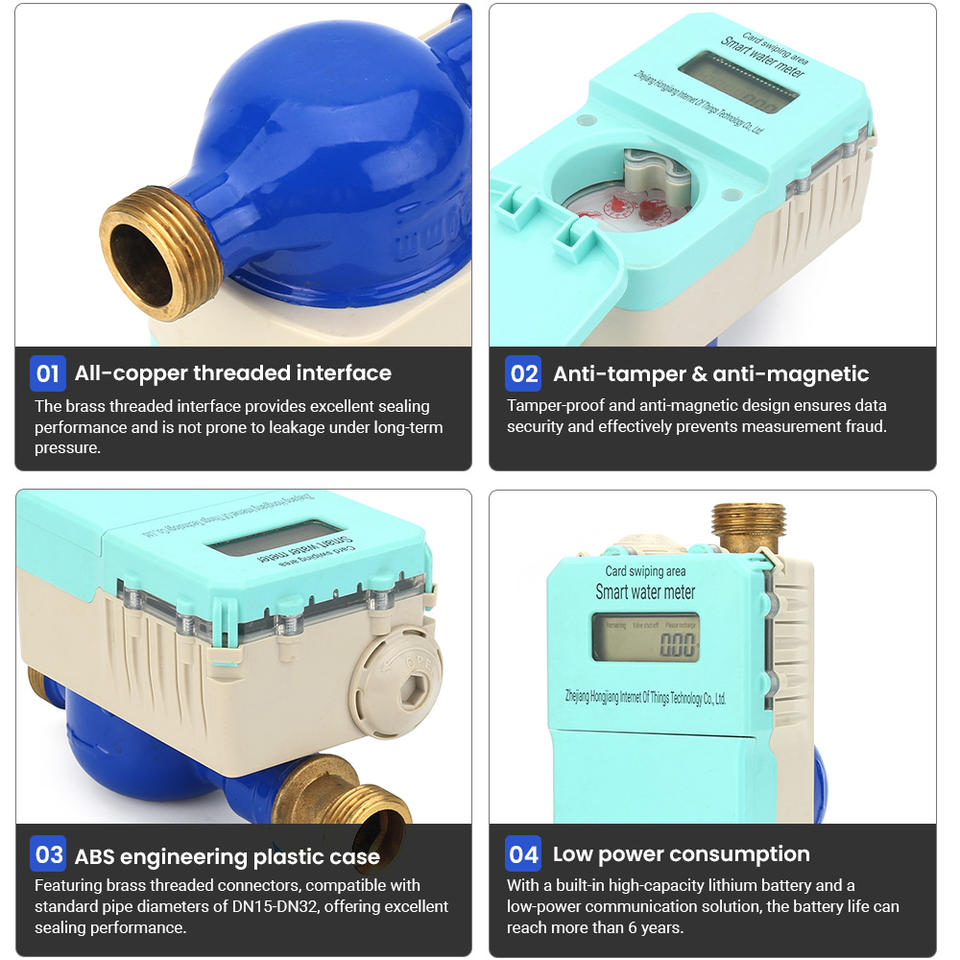 Compteur d'eau prépayé intelligent en laiton et acier DN32mm, étanche IP68, système de vente prépayée pour environnements secs et humides, OEM