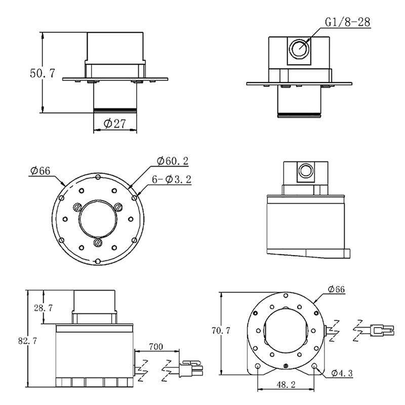 Spécifications des filetages:Configuration standard G1/8-28 (personnalisable)