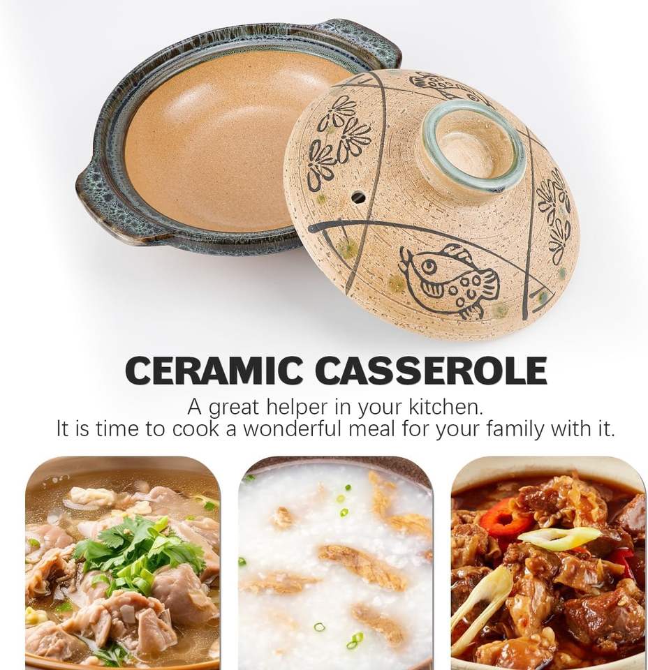 DOERDO Casserole en argile chinoise design classique de 7 pouces, couvercle de marmite en terre cuite de 18cm pour restaurant à domicile
