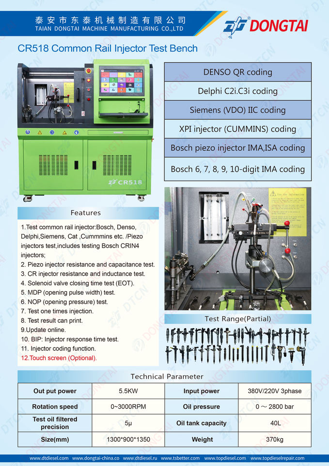 Banc d'essai d'injecteurs Common Rail DONGTAI CR518 avec nouveau système 980
