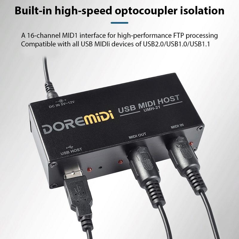 DOREMiDi Boîte hôte MIDI USB haute vitesse 1-in 1-out 16 canaux Boîte MIDI Applicable au clavier MIDI Tube de soufflage électrique