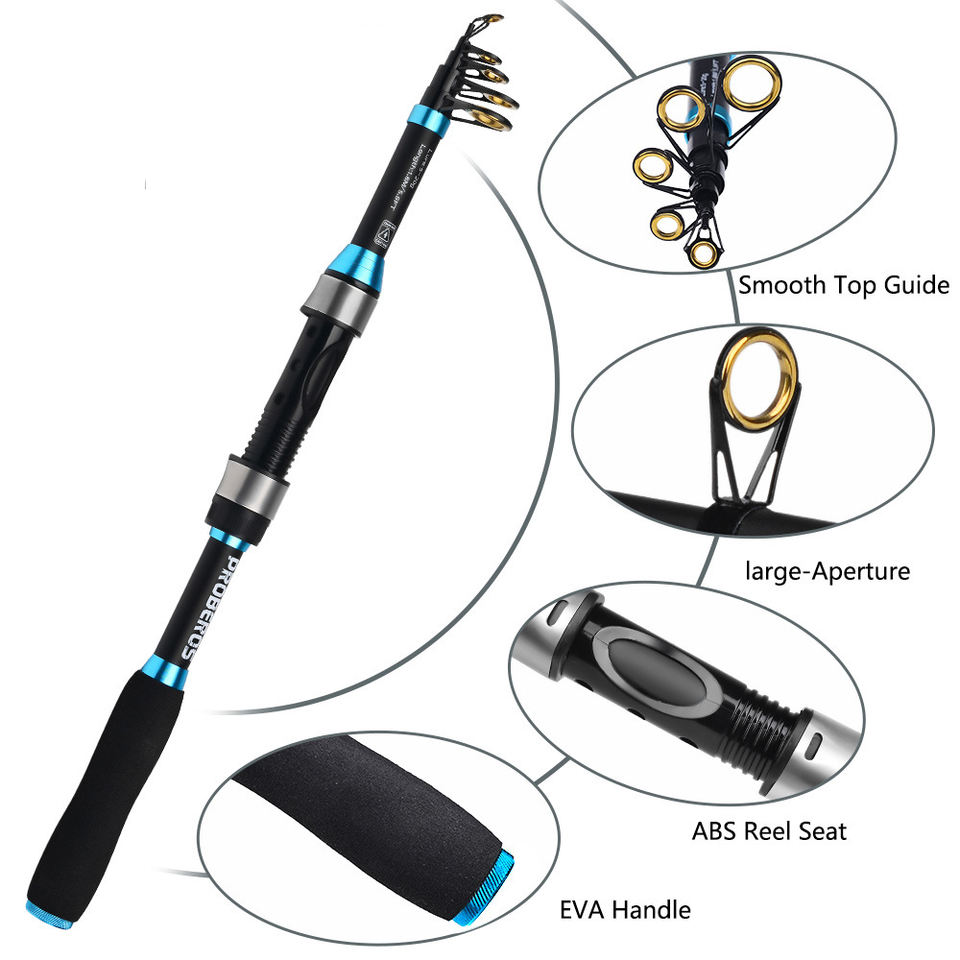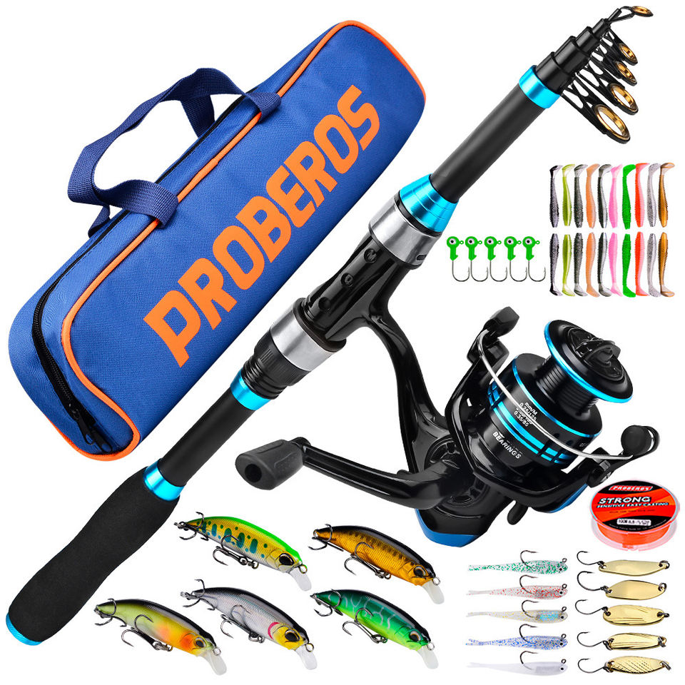 DORISEA Canne à pêche télescopique Moulinet Combo Set Fibre de verre Métal Crochet Leurre Ligne pour Lake River Stream Fishing Bass Perch Marlin