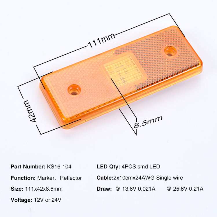 Feu de gabarit LED orange homologué DOT KS16-104 12V 4LED IP65 pour camion, remorque, bus, véhicule utilitaire