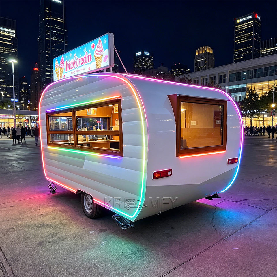 Remorque de concession de crème glacée et de restauration rapide avec corps en acier galvanisé personnalisé, homologuée DOT CE, pour une conception sur mesure.