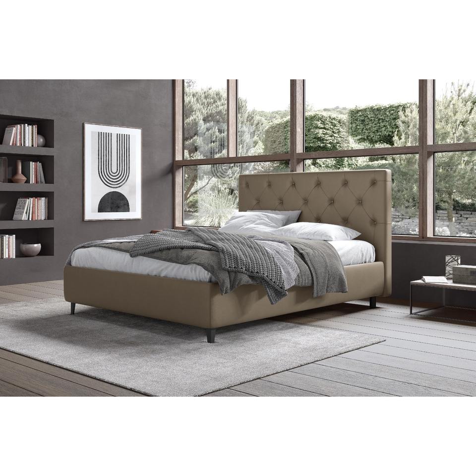 Lit double avec rangement en cuir écologique noisette