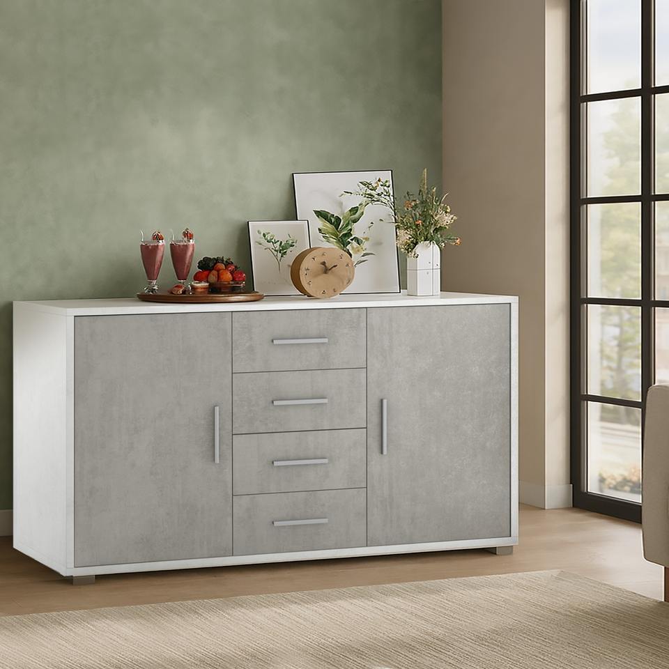 Buffet de rangement moderne et minimaliste pour salle à manger, modèle mobile double, 154x41 H 84 cm, blanc ciment