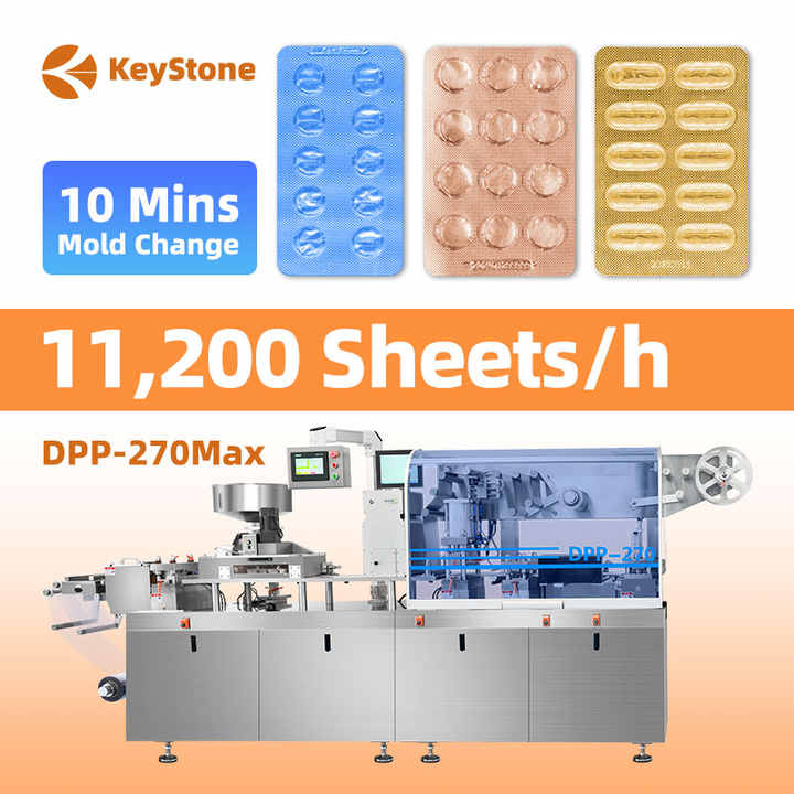 Machine d'emballage sous blister automatique pour plaquettes plates en PVC et alu, machine d'emballage sous blister pour comprimés et capsules