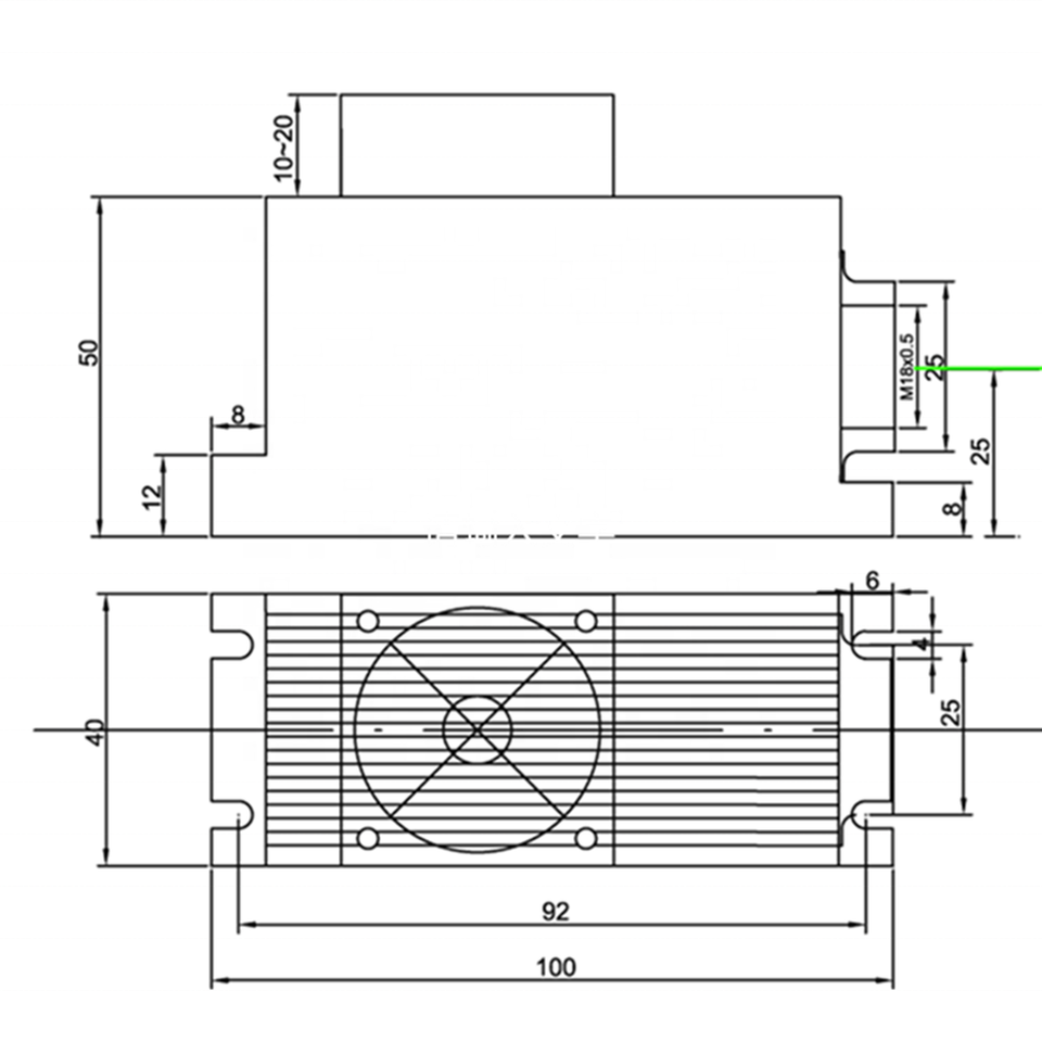 Dimensions de la tête de laser:100(L)x40(W)x50(H)mm3