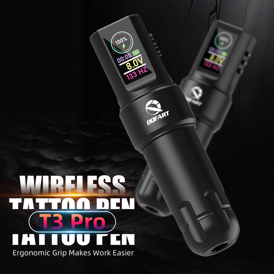 Stylo à tatouer sans fil DQFAR T3 PRO en plastique avec écran couleur, machine à tatouer à entraînement direct, fonctionnant sur batterie
