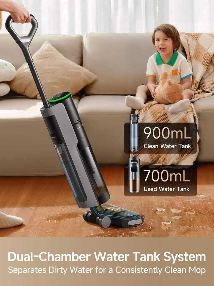 Aspirateur sans fil DREAME avec phares LED, aspiration puissante 450W, vidage à une touche, pour poils d'animaux, tapis et surfaces humides
