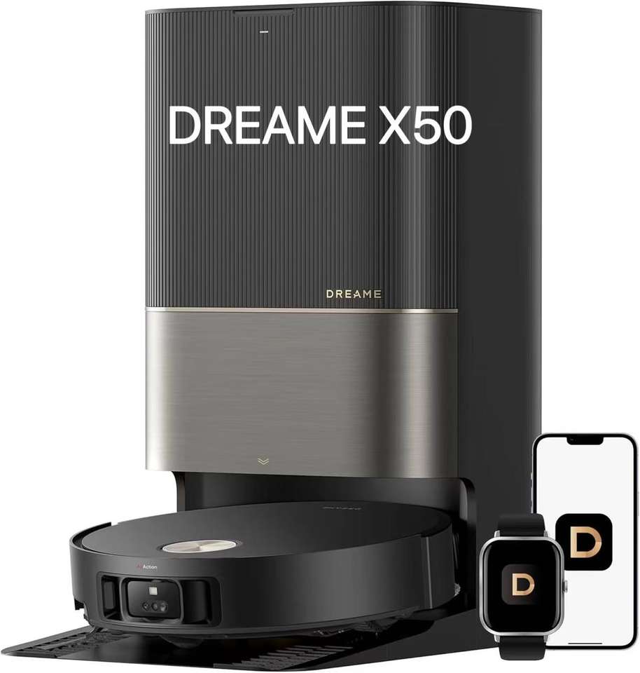 DREAME X50 Pro aspirateur robot 19500 Pa 6400 mAh, 198 min, lavage auto à l'eau chaude (158°F), vidage auto sac 3,2 L, LDS