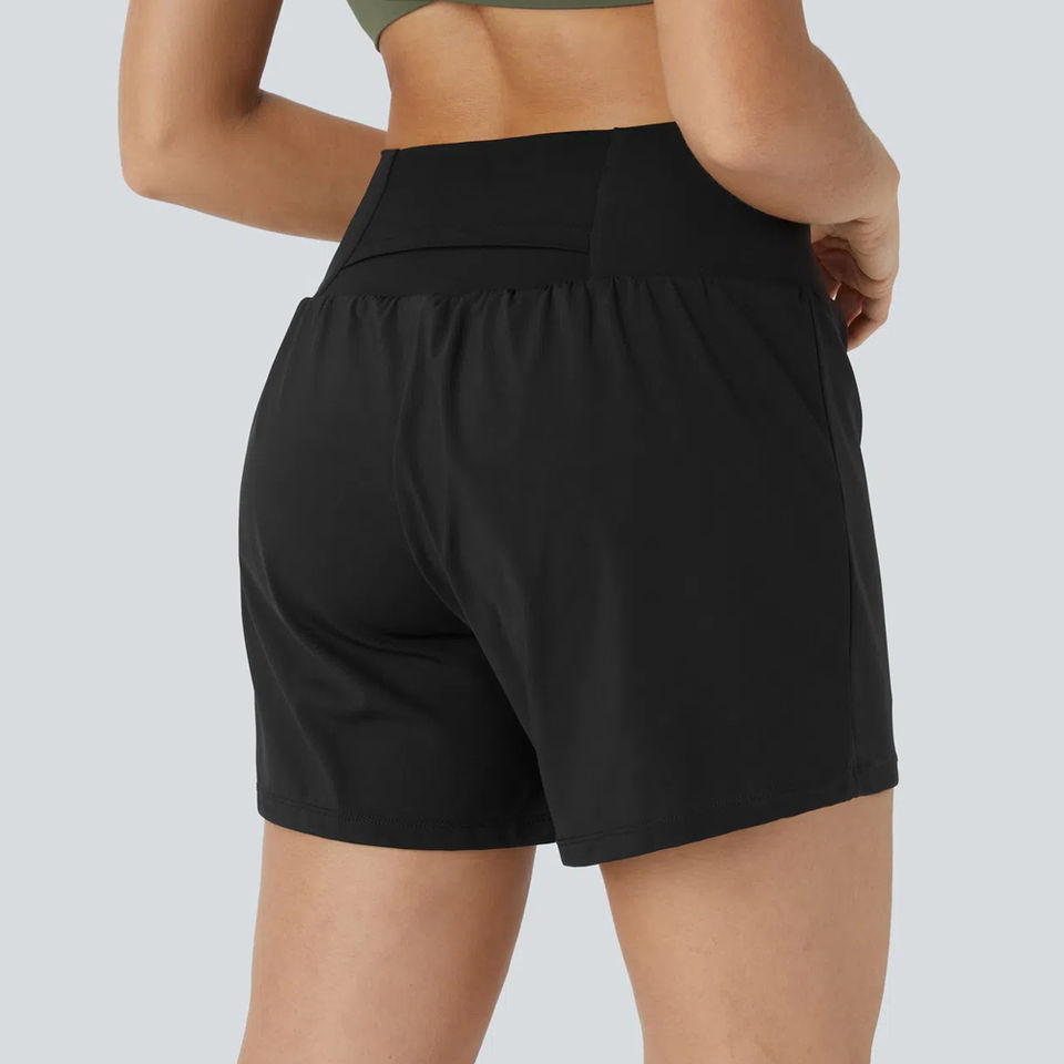 Ensemble de sport deux pièces DS-8757 : Haut de yoga corset respirant à imprimé uni et manches courtes, avec effet froncé aux fesses, en Spandex/Nylon