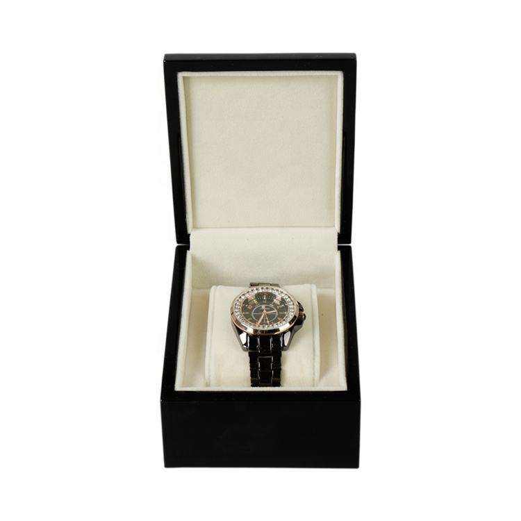 Boîte à montre en bois rectangulaire noire de luxe, personnalisée, écologique, haute brillance, DS DSO-1014