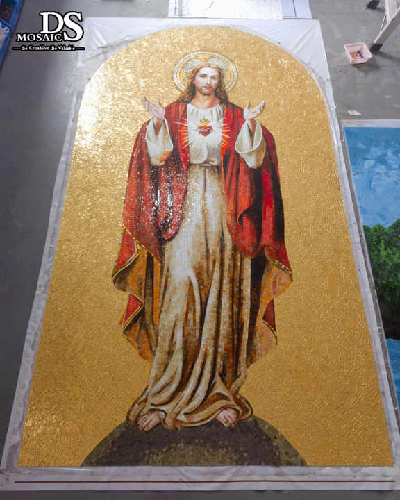 Mosaïque DS Personnalisée Découpe à la Main Religieuse Jésus Vierge Marie Eglise Carreaux Muraux Art Mural Mosaïque de Verre Belle Mosaïque Murale