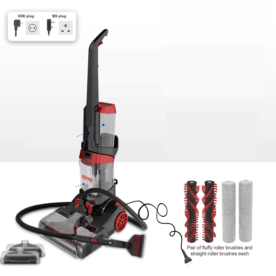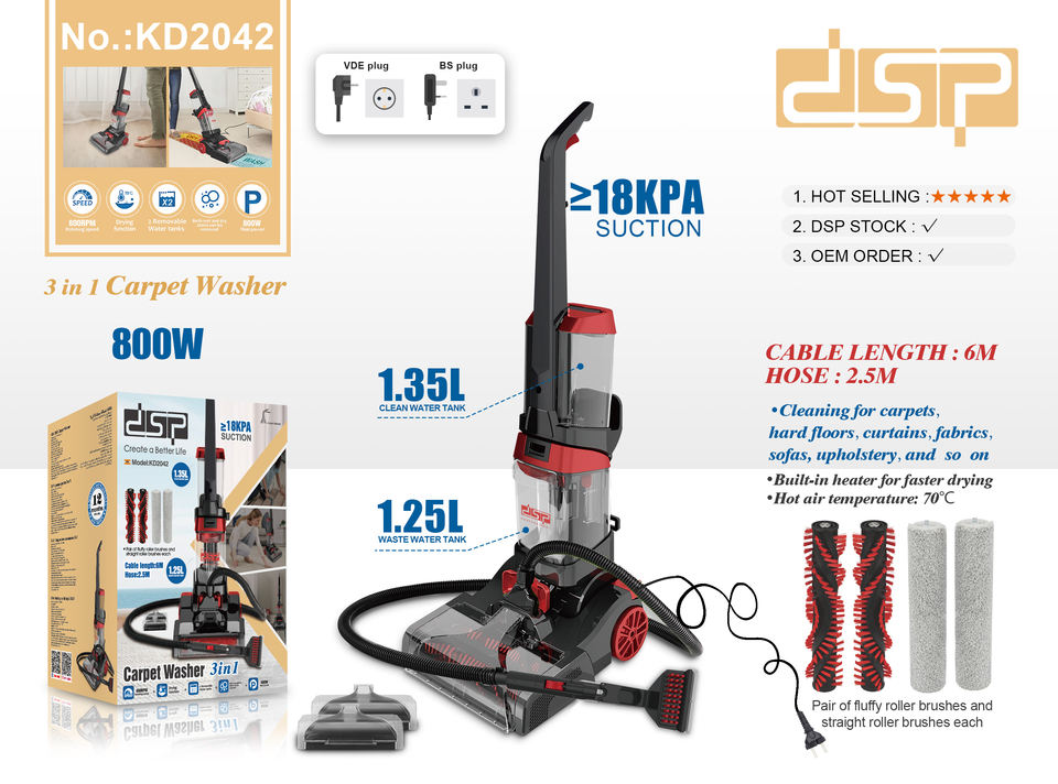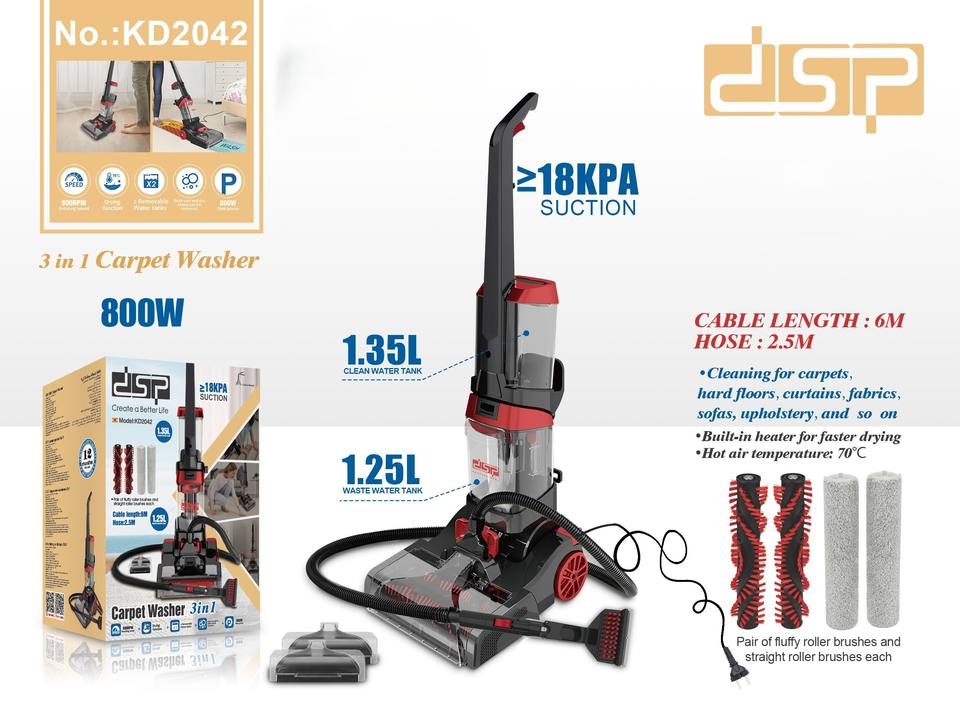 DSP Hot Seller Pro Laveur de tapis 3-en-1, 800W 18KPA, séchage chauffant 70°C ℃ avec 4 outils pour tapis, sols durs, canapés, animaux domestiques