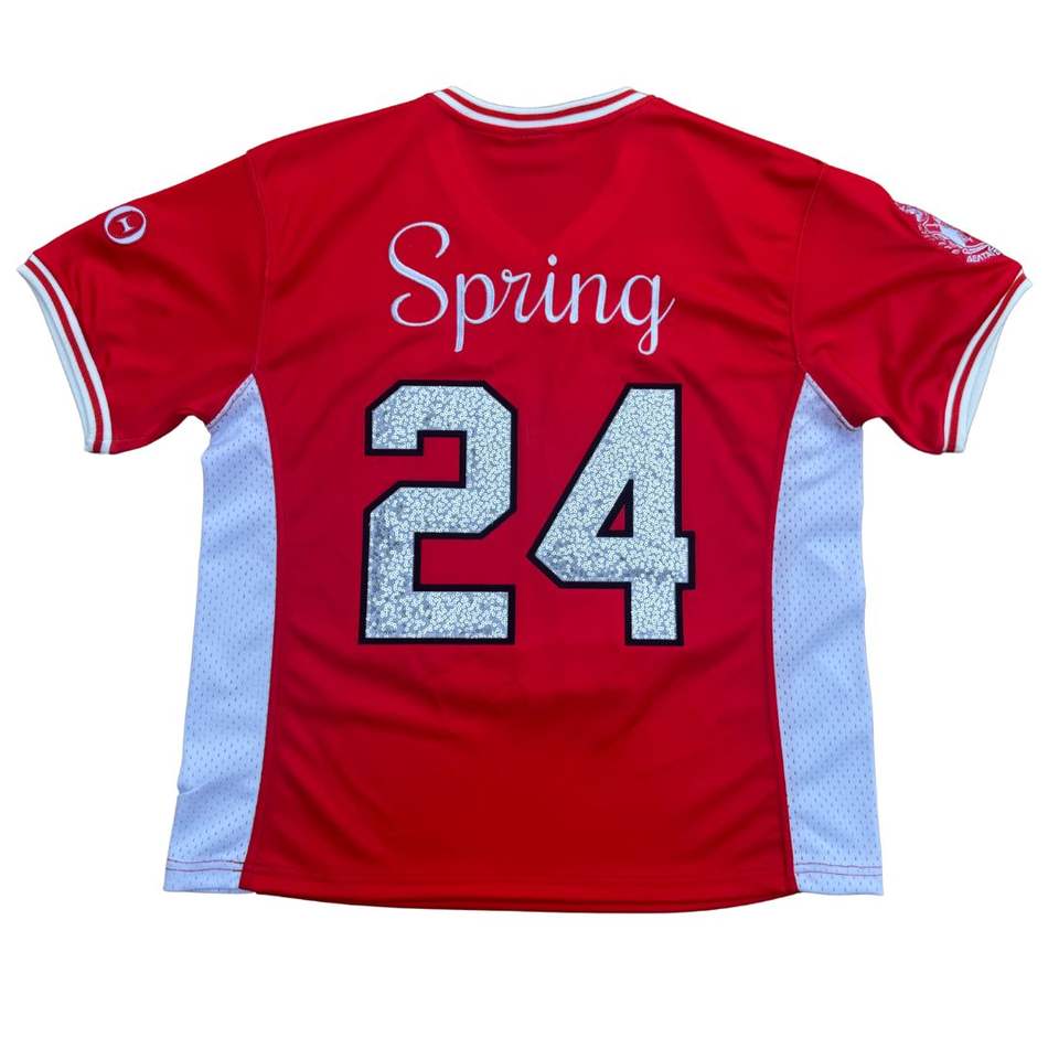 DST Football Jersey Red with White Trim Sequin Embroidery Glitter Numbers 13 and 24 Delta Sorority Greek Life Apparel Women