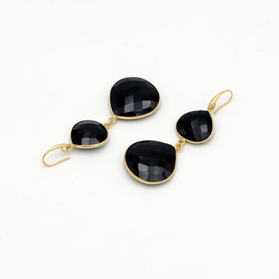 DUA Brass Black Onyx Heart Drop Earrings Handmade 18K Gold Plated Trendy Wedding Jewelry for Women