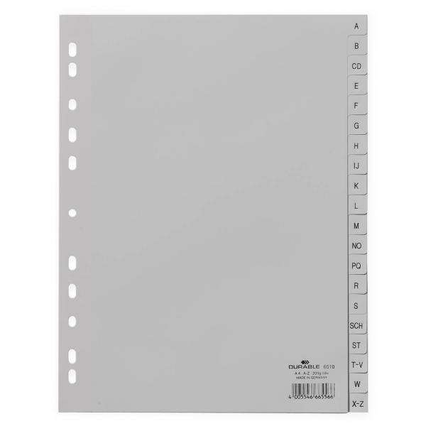DURABLE - 6510-10 Diviseur A4 20 touches A-Z cavalierini pré-imprimé en PPL, gris (multi-pack) ORGANISATION ET PRODUITS DE DÉPÔT