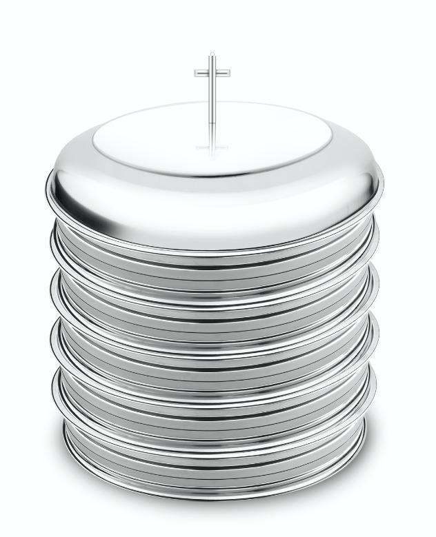 Ensemble de Communion Deluxe Durable à Cinq Plateaux, 200 Gobelets en Plastique, Finition Poli Miroir en Acier Inoxydable, Anneau de Base, Compatible Lave-Vaisselle, Qualité Alimentaire