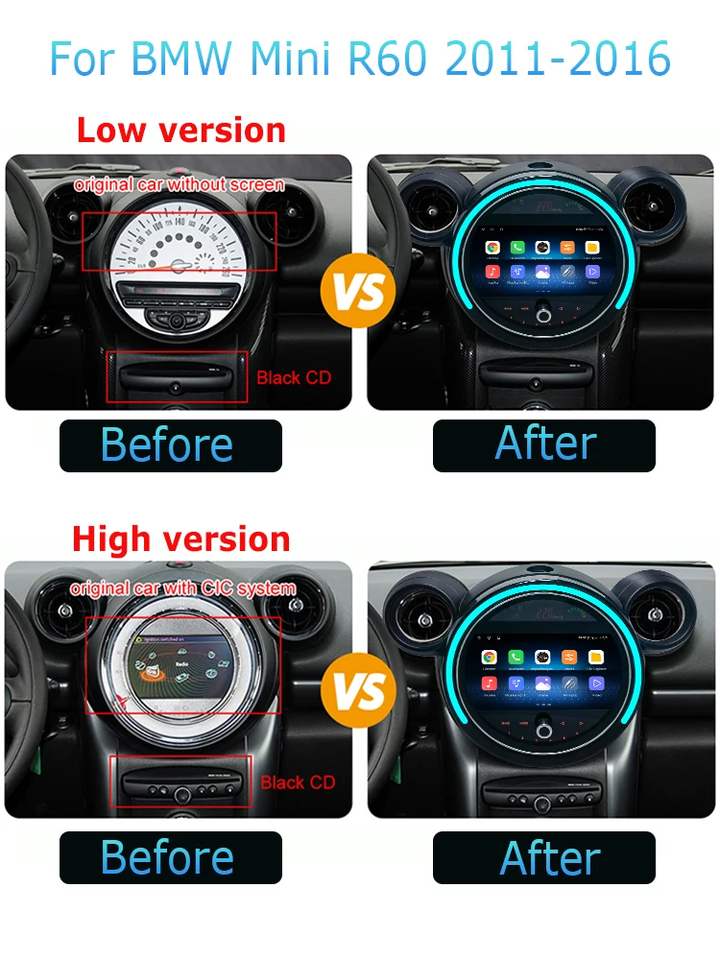 Lecteur Multimédia DVD pour BMW Mini Cooper R56 R57 R58 R60 2007 - 2016 avec Navigation GPS Android 12 Autoradio Écran Stéréo Carplay