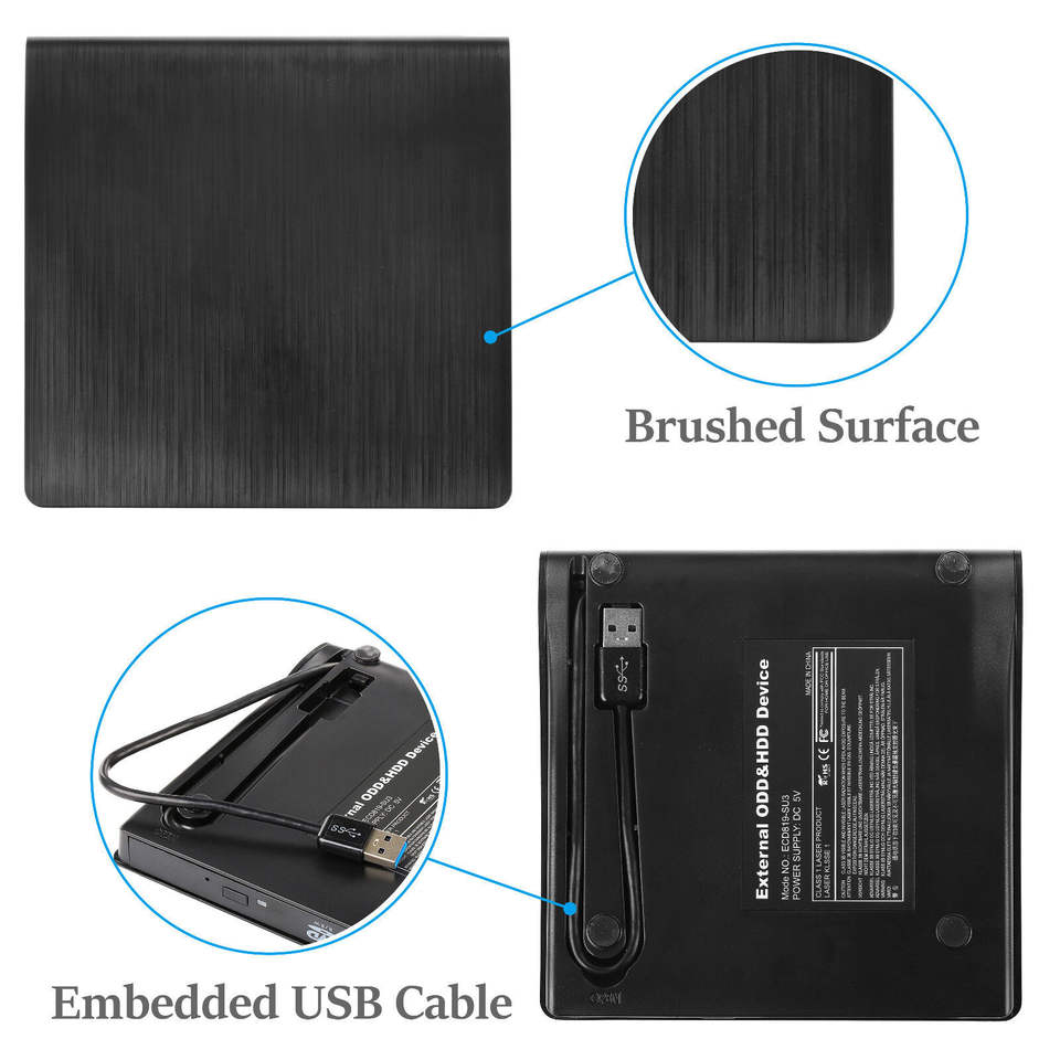 Lecteur DVD Lecteur de CD/DVD externe mince Lecteur USB 3.0 Lecteur de graveur pour ordinateur portable PC Mac HP