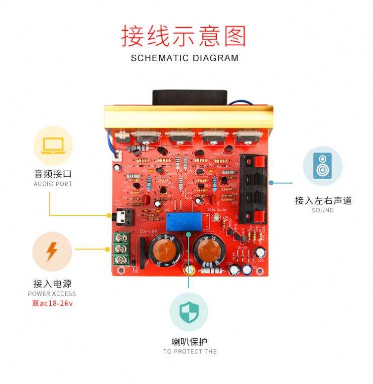 Carte d'amplificateur de puissance stéréo DX-188 180Wx2 préamplificateur de son de haut-parleur 2CH