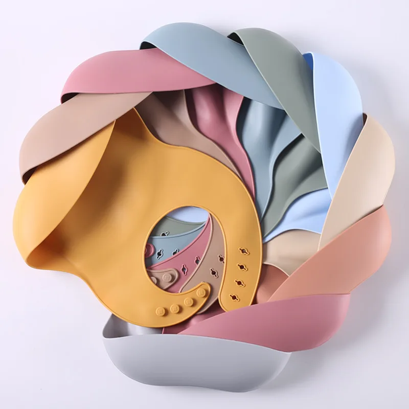 Bavoirs pour bébé en silicone de qualité alimentaire, sans BPA, avec fermeture à bouton, faciles à nettoyer, imprimés sur mesure, pour bébés de 19 à 24 mois, lavables, fabriqués en Chine