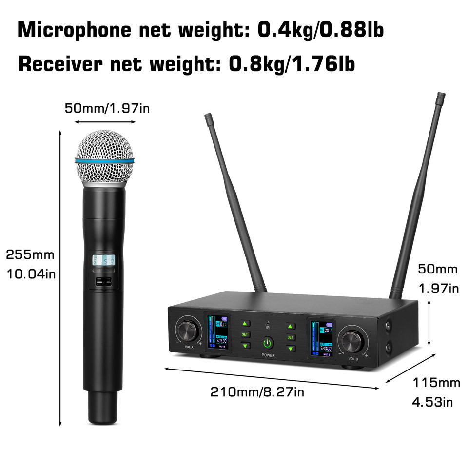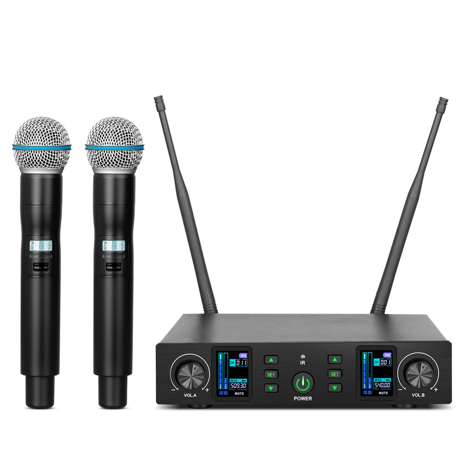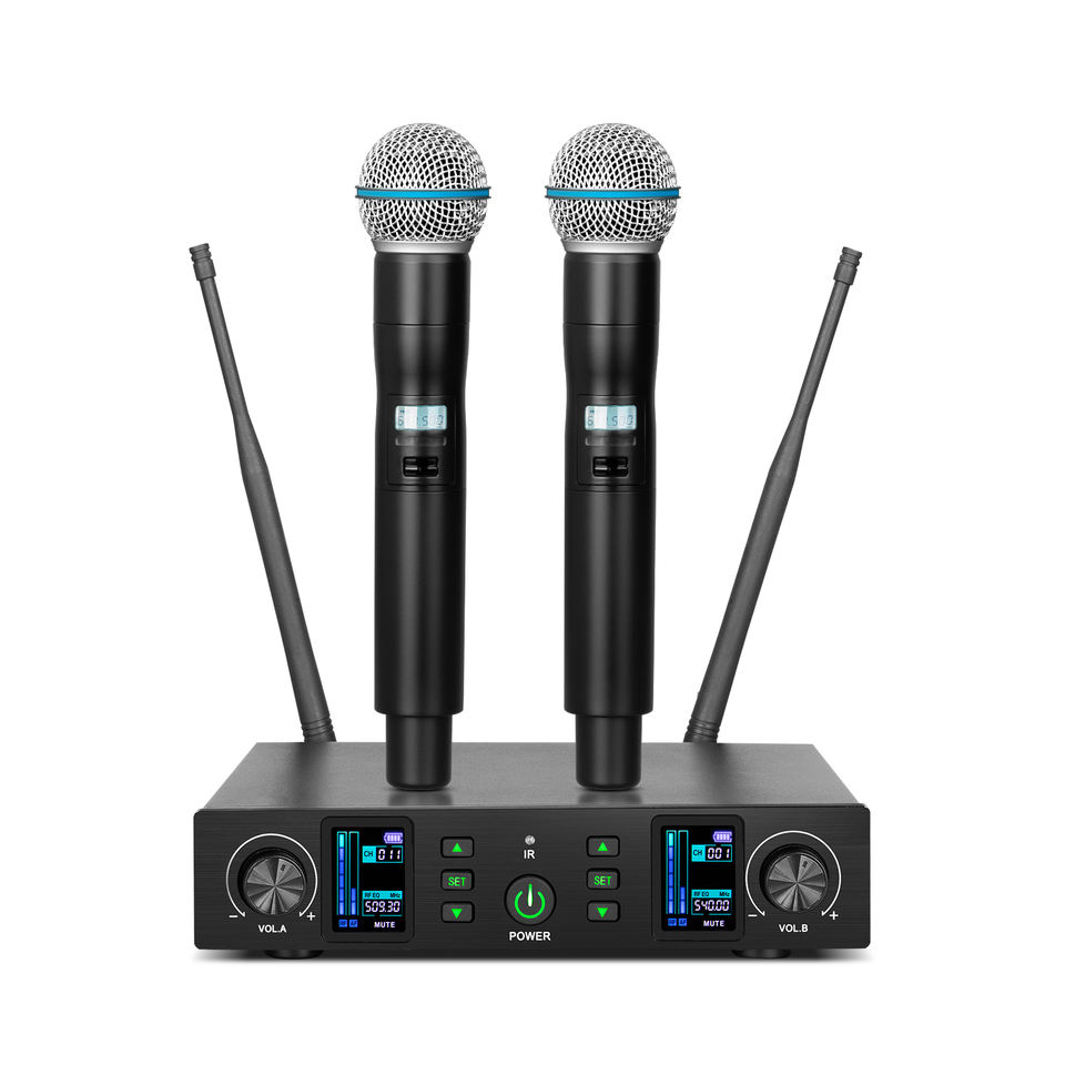 Microphone sans fil professionnel DX11 à condensateur cardioïde avec réduction de bruit et construction métallique pour karaoké 2 canaux