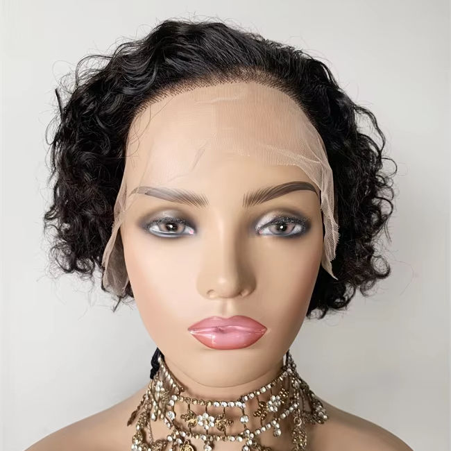 DX241 Stock mannequin tête prothèse cuticule alignée non traitée vietnames cheveux court coupe de lutin bouclés pleine dentelle perruques henan cheveux