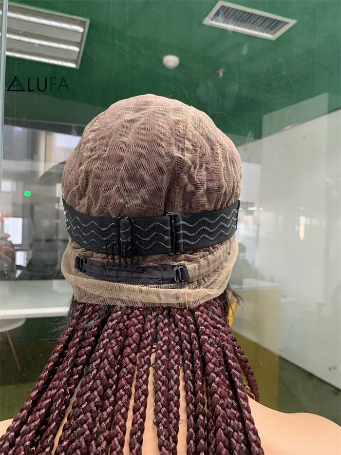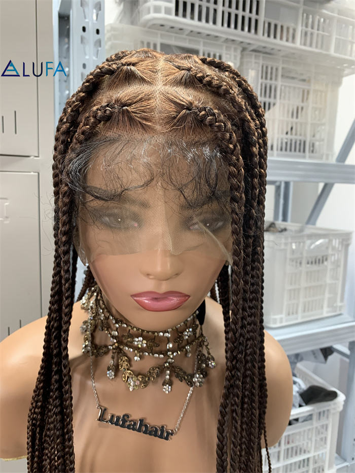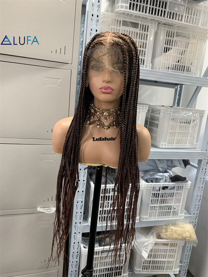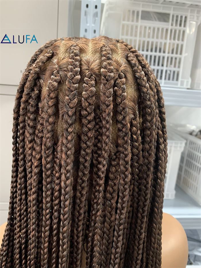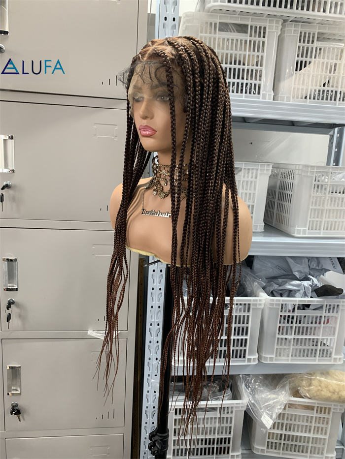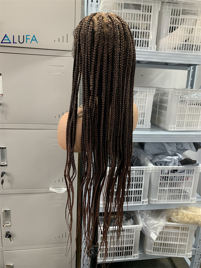 Perruques tressées DX624 avec extrémités droites, 32 pouces, perruque complète en dentelle carrée faite à la main, tresses sans nœuds avec cheveux de bébé synthétiques brun foncé