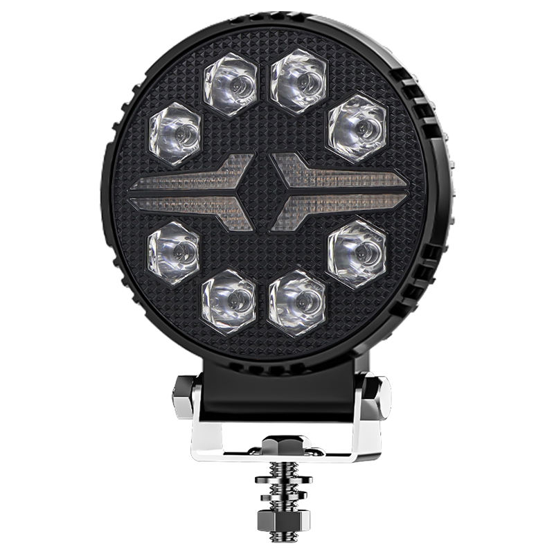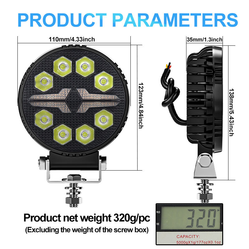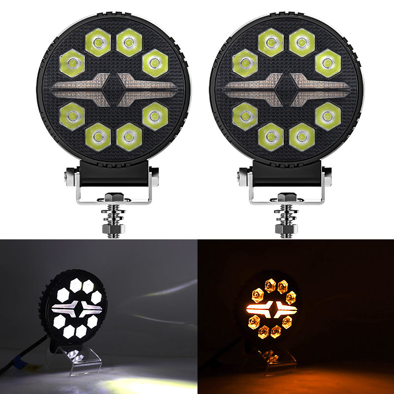 DXZ 2024 nouveau projecteur rond 4 pouces LED 4X4 8LED blanc + ambre DRL pour camion Led feux de travail couverture noire Led phares carrés