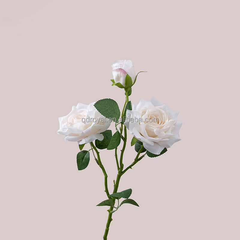 DY103 New Arrival Vintage Artificial European Rose 3 Heads Burnt Silk Rose Stems for Wedding Interior Valentine's Day Easter