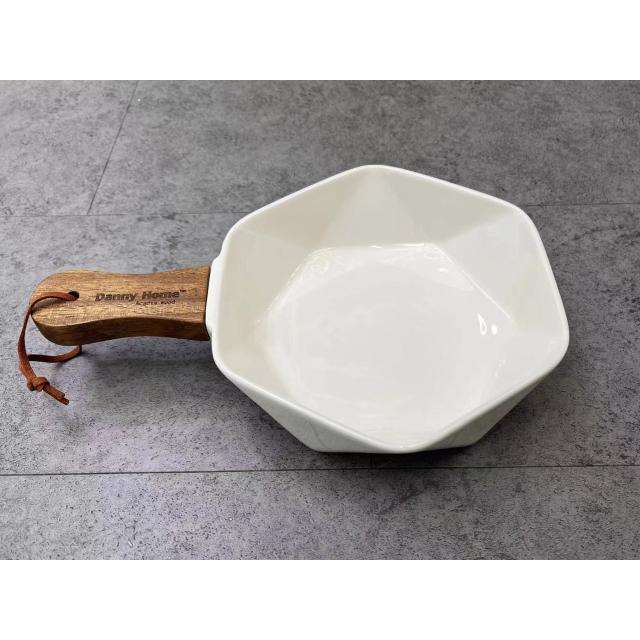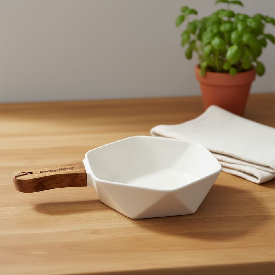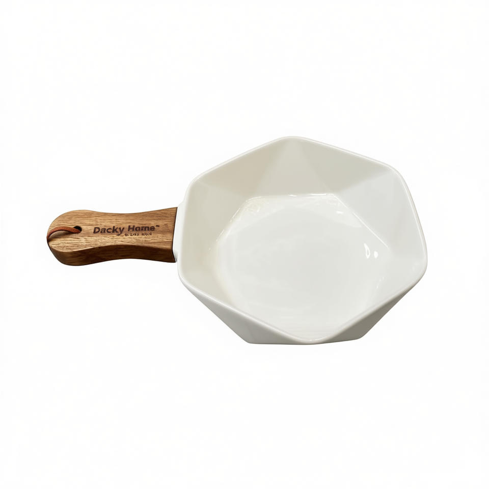 Dacky Home White Porcelain Dish With Wood Handle Irregular Shape Minimalist Design Kitchen Use