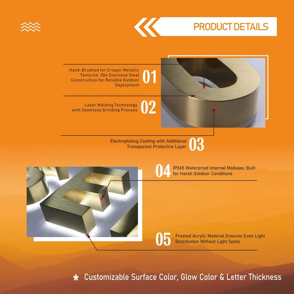 Enseigne Daco OEM/ODM personnalisée avec logo 3D rétroéclairé pour écoles et hôtels, publicité extérieure, éclairage LED, étanche IP65, conception gratuite