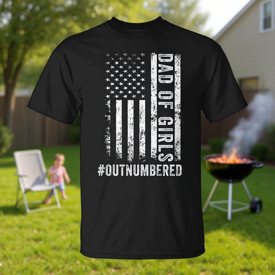 T-shirt pour papa de filles, motif drapeau américain noir, pour la fête des pères