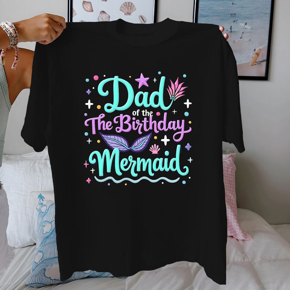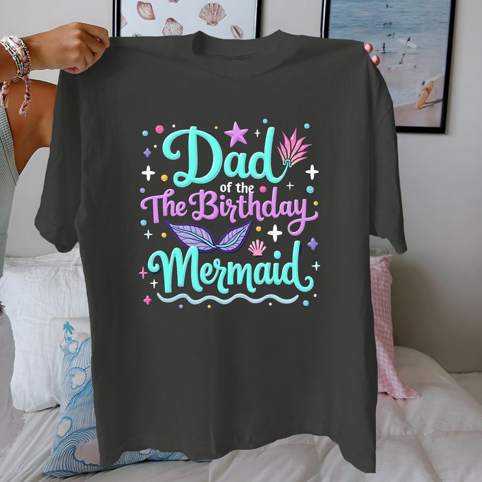 Dad of the Birthday Mermaid pure cotton women's Tshirt comfort fit