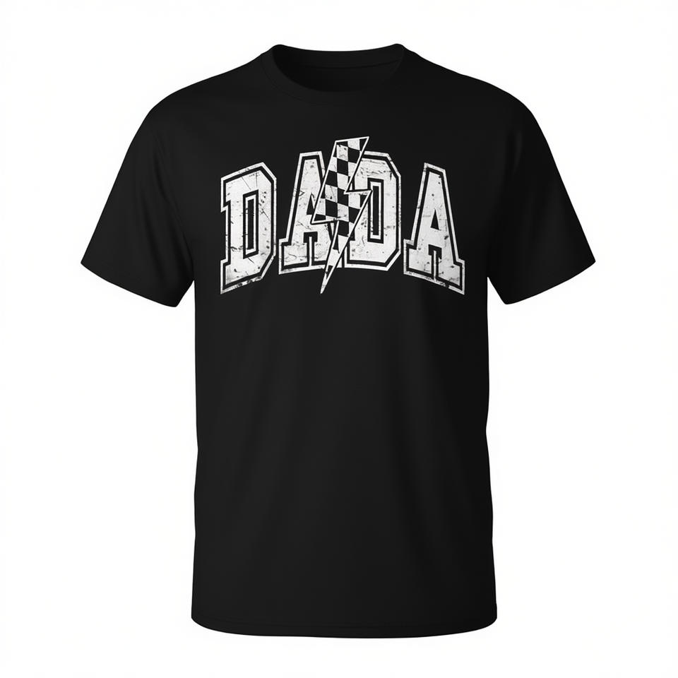 T-shirt universitaire à carreaux Dada Lightning Bolt pour papa, cadeau pour la fête des pères