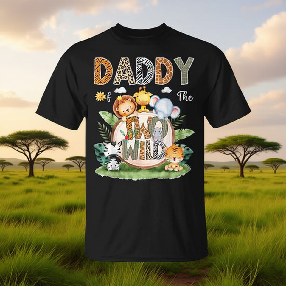 T-shirt pour papa des deux enfants, pour le 2e anniversaire, pour les amateurs d'animaux de la savane