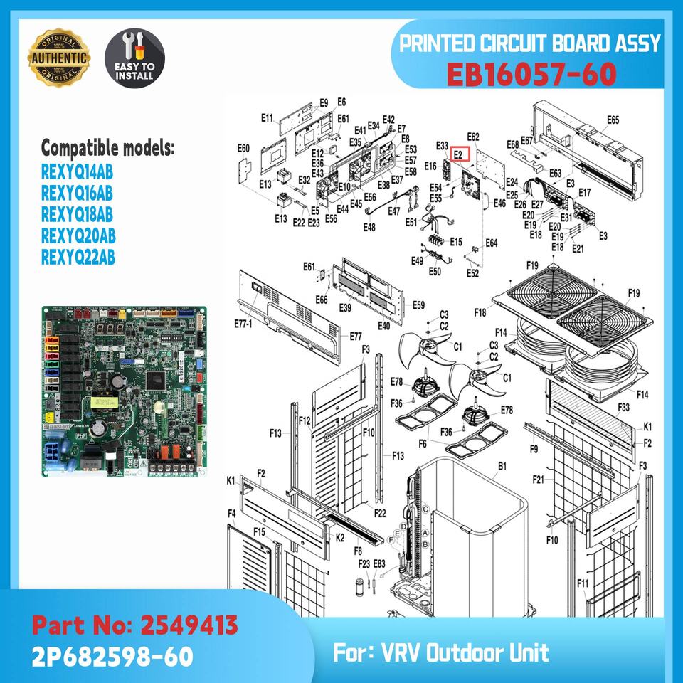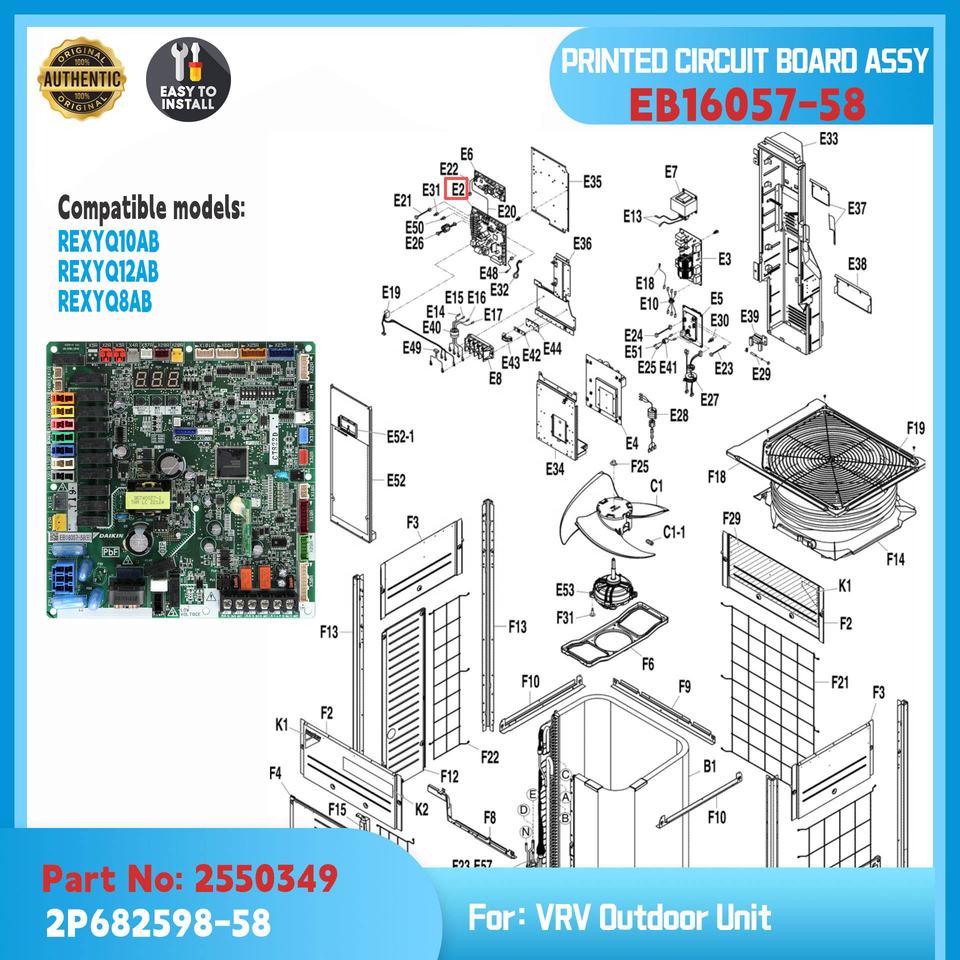 Circuit imprimé assemblé EB16057 pour module de commande PCB de l'unité extérieure du système de climatisation Daikin VRV. Pièces de rechange OEM pour CVC.