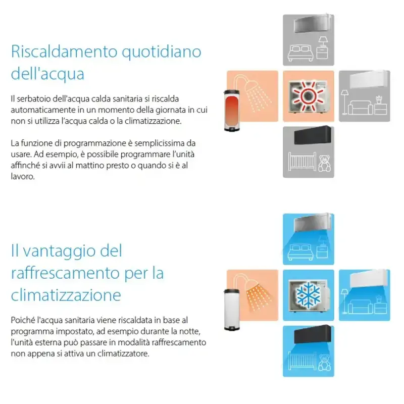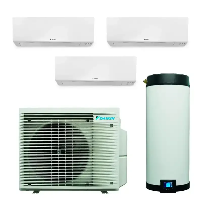 Système de climatisation Daikin Multi+ 120 L pour la maison avec refroidissement, chauffage et ECS 5,2 kW, unité extérieure split Perfera 9+9+9, unités intérieures split