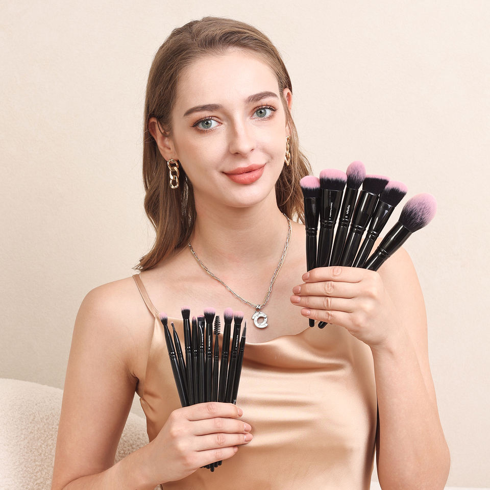 Ensemble de pinceaux de maquillage Daily Queen, logo personnalisé, 19 pièces, série rose pour cheveux, noir, haute qualité, poudre moelleuse, fond de teint, fard à paupières