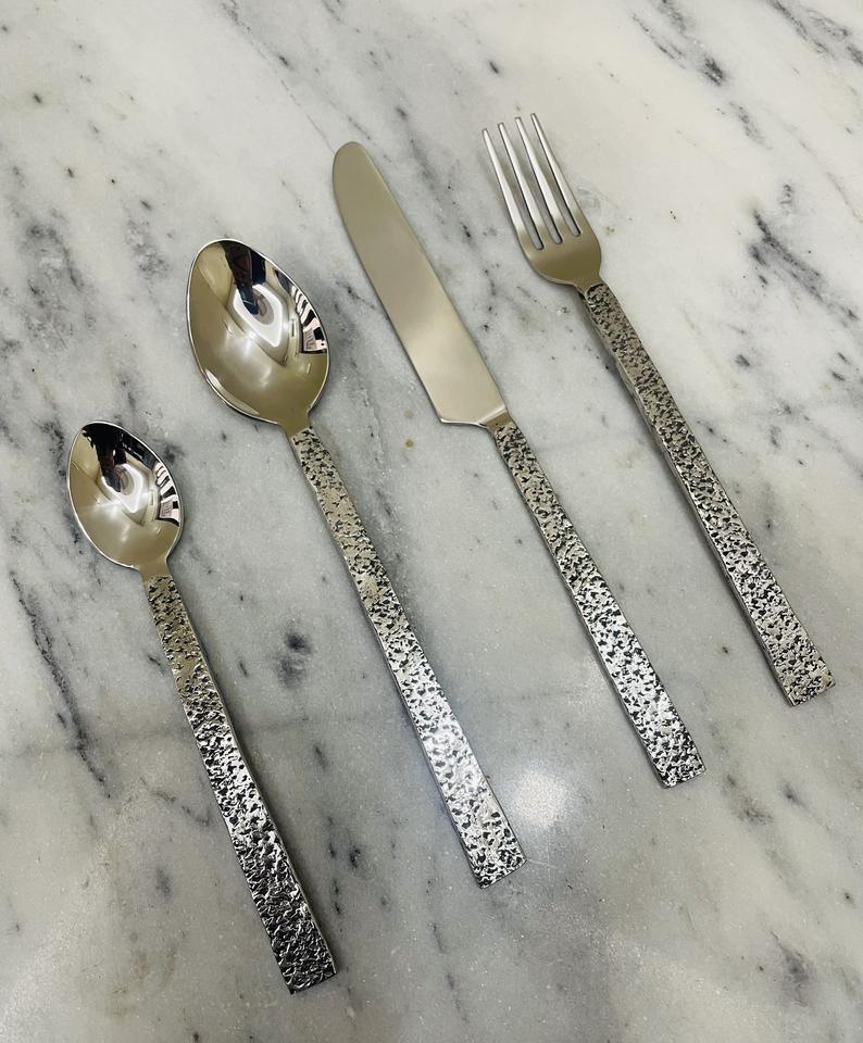 Ensemble de couverts à usage quotidien Vaisselle en acier inoxydable miroir Couverts durables Ensemble cuillère et couteau texturés