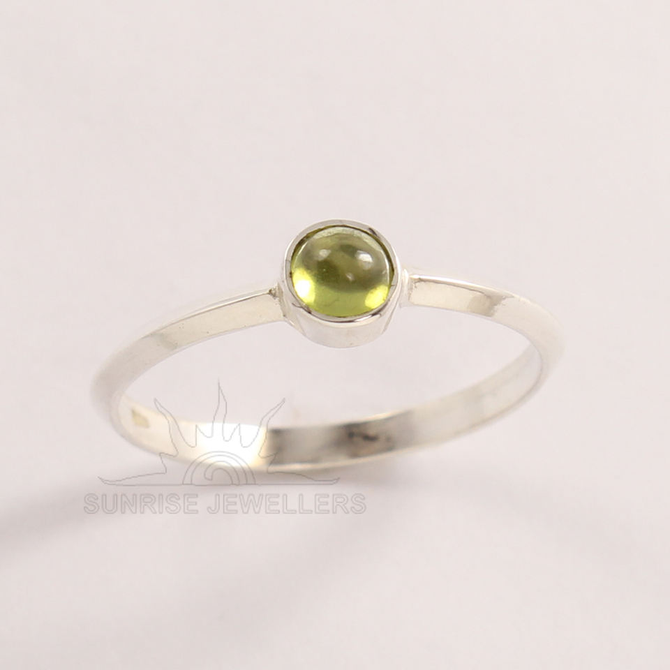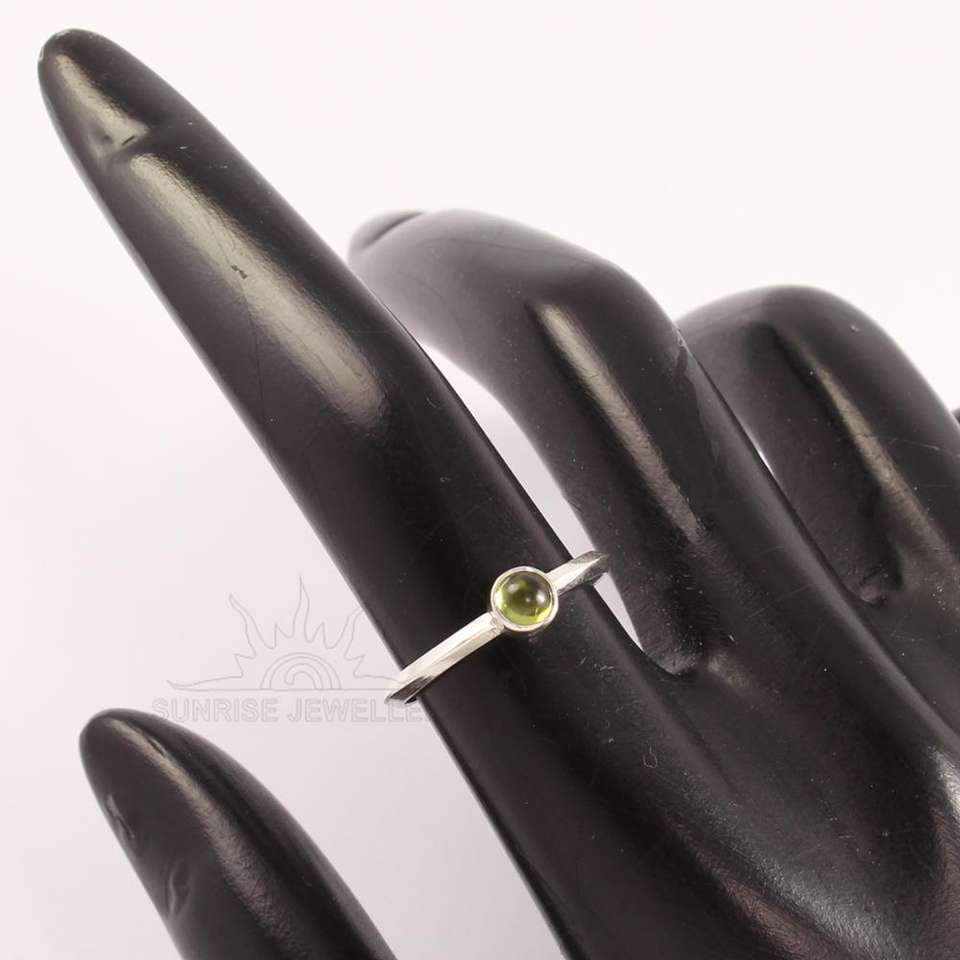 Bague à porter quotidiennement Toutes les tailles Argent sterling pur 925 Grossiste Bijouterie Naturel PÉRIDOT Cabochon Rond Pierres Précieuses Empilable
