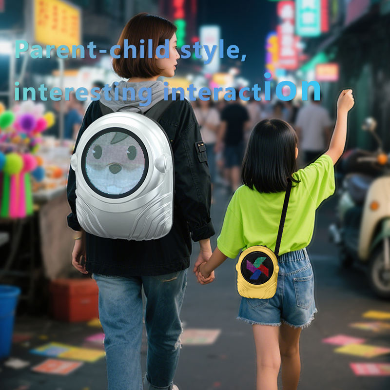Fermeture à glissière quotidienne sac à dos de sport décontracté Parent-enfant LED astronaute écran mignon texte motif APP contrôle réglage à la mode